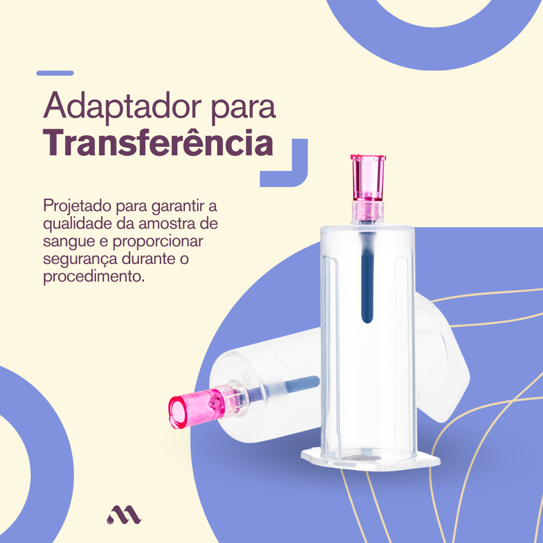 O adaptador de transferência é utilizado para a transferência de sangue de seringas para tubos de coleta de sangue a vácuo. Compatível com conexões Luer Slip ou Luer Lock.