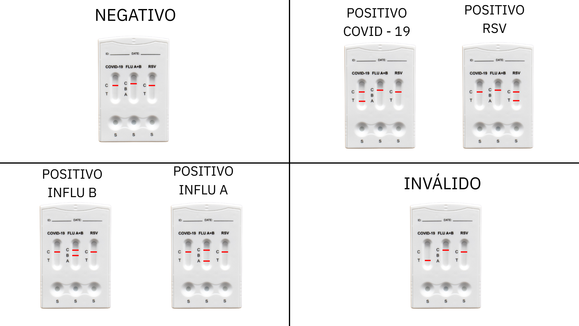 • Detecta simultaneamente 4 antígenos respiratórios em um único teste
