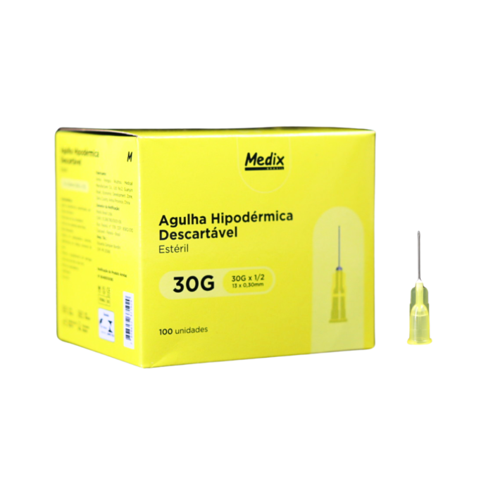Agulha Hipodérmica 13×0,30mm (30G) Estéril – Cor Amarela – Caixa com 100 Unidades – 10 caixas (1000 un)