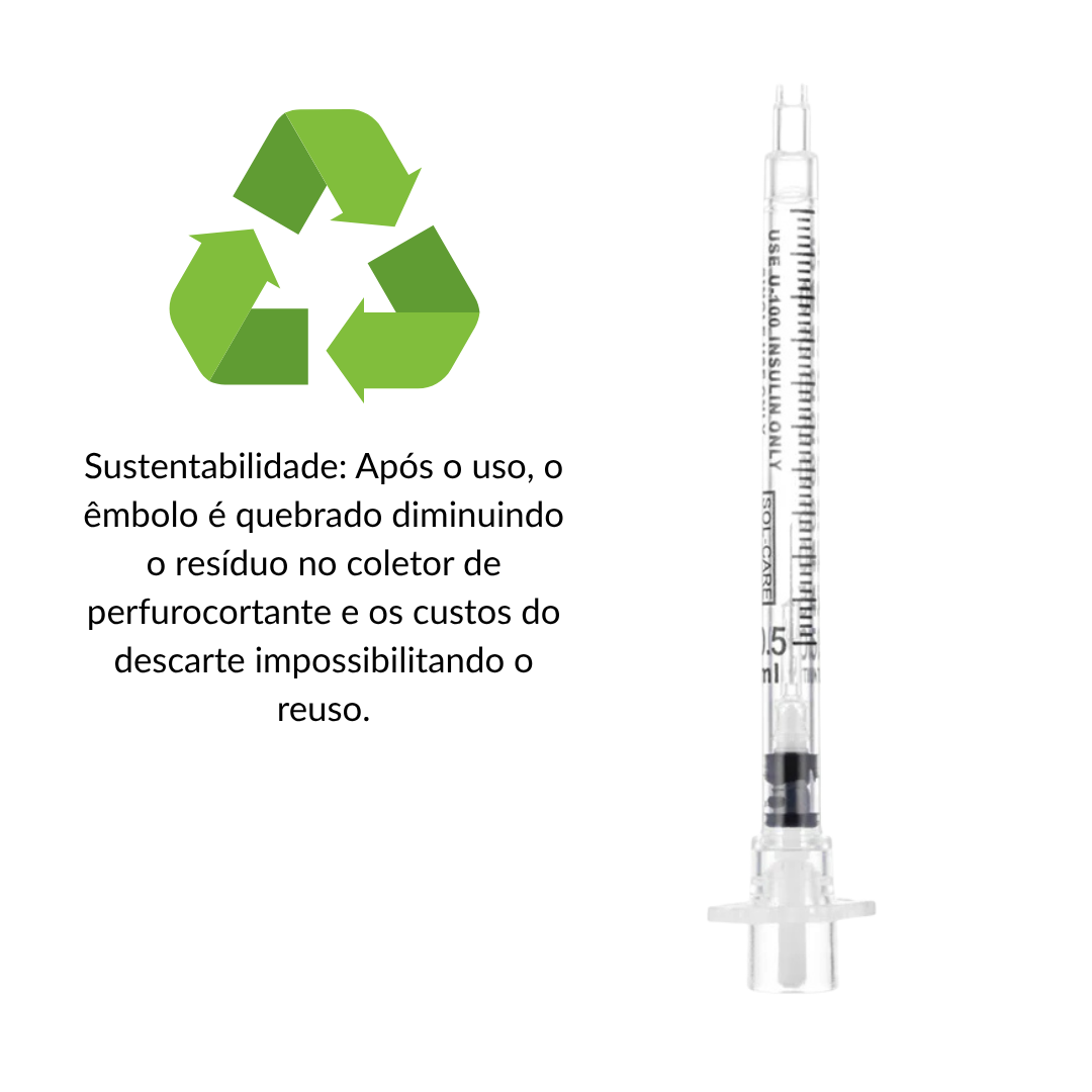 10. Sustentabilidade: Após o uso, o êmbolo é quebrado diminuindo o resíduo no coletor de perfurocortante e os custos do descarte impossibilitando o reuso.