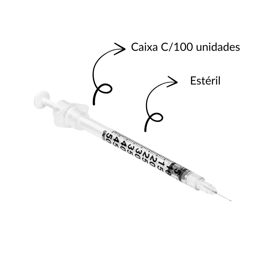Seringa De Insulina 100u 1 ml Com Agulha Fixa 30g 30×0,8mm C/100