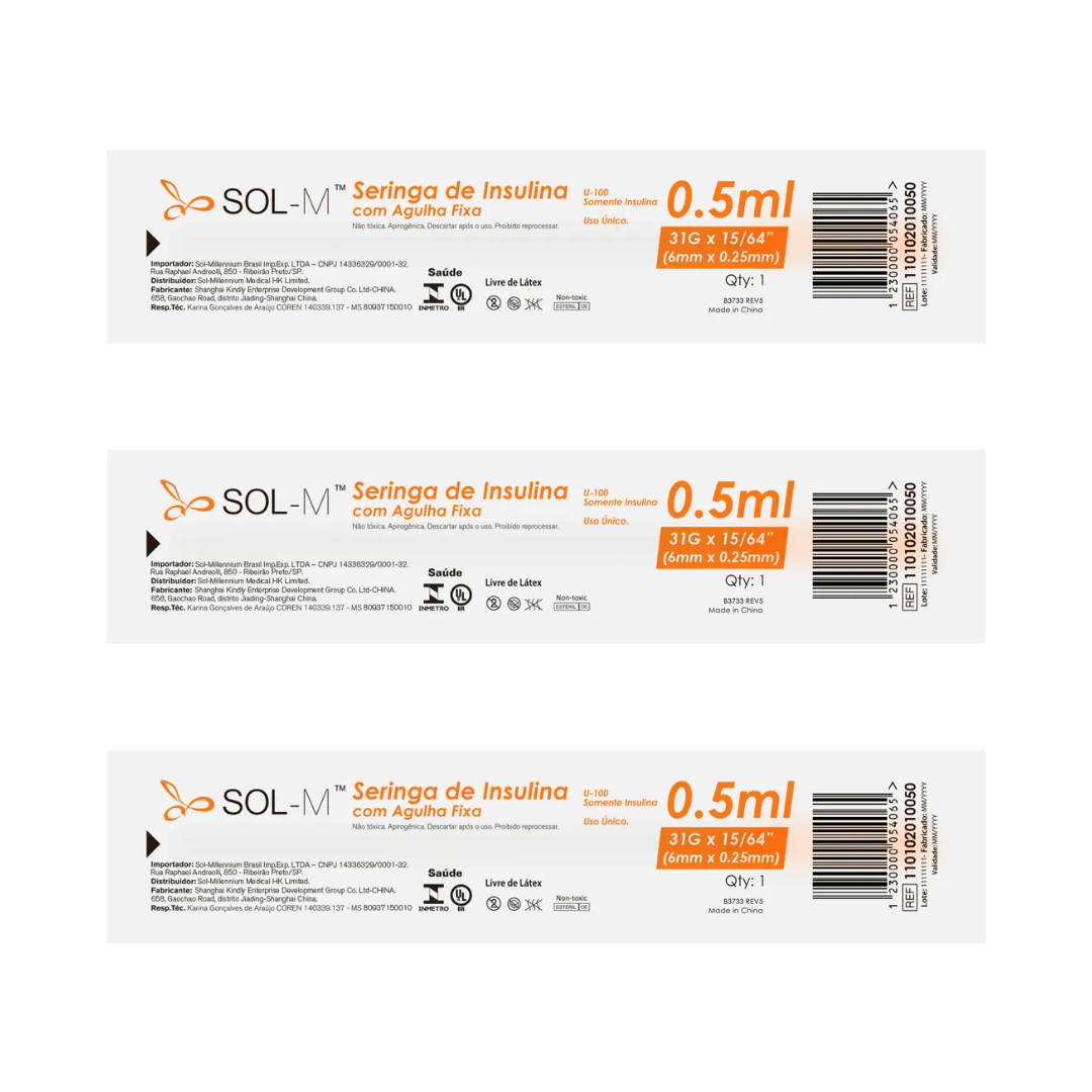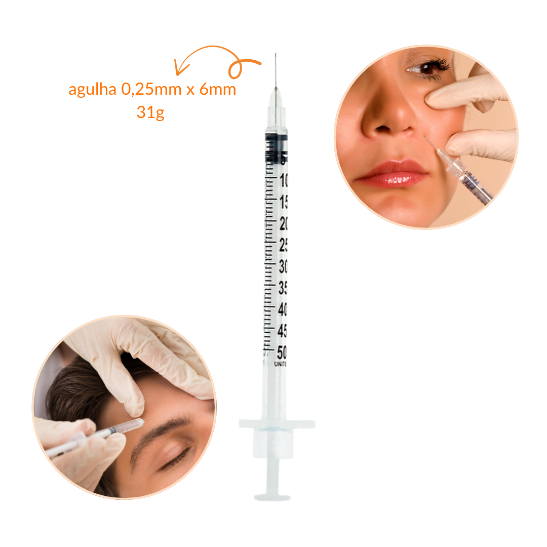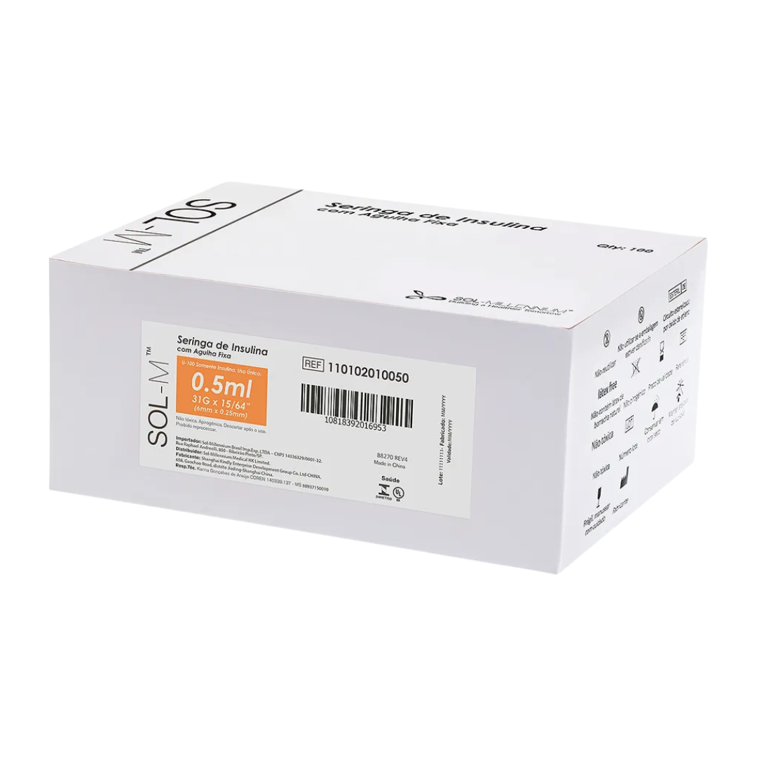 Seringa De Insulina 50U 0,5mL Com Agulha Fixa 31G 0,25 X 6mm C/100