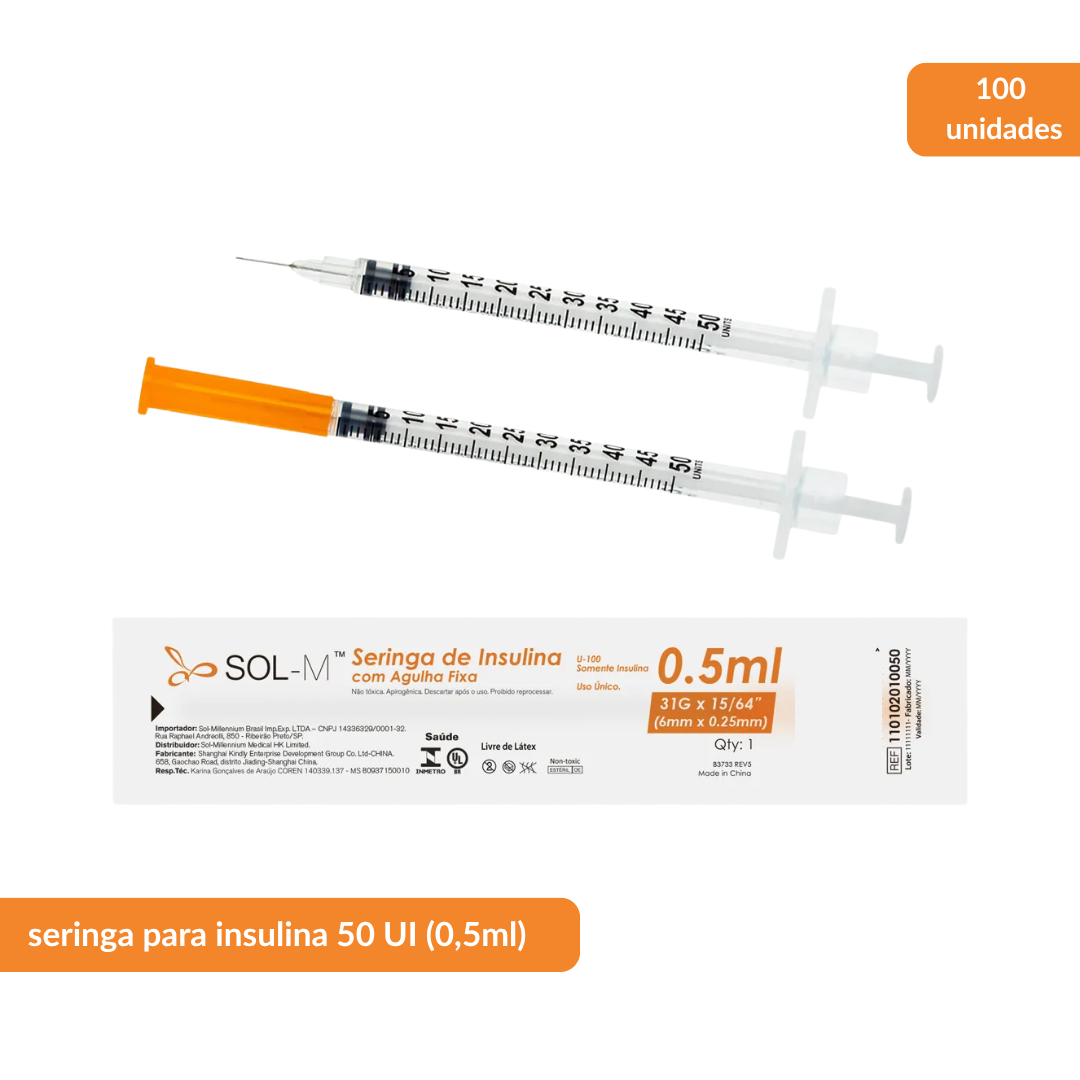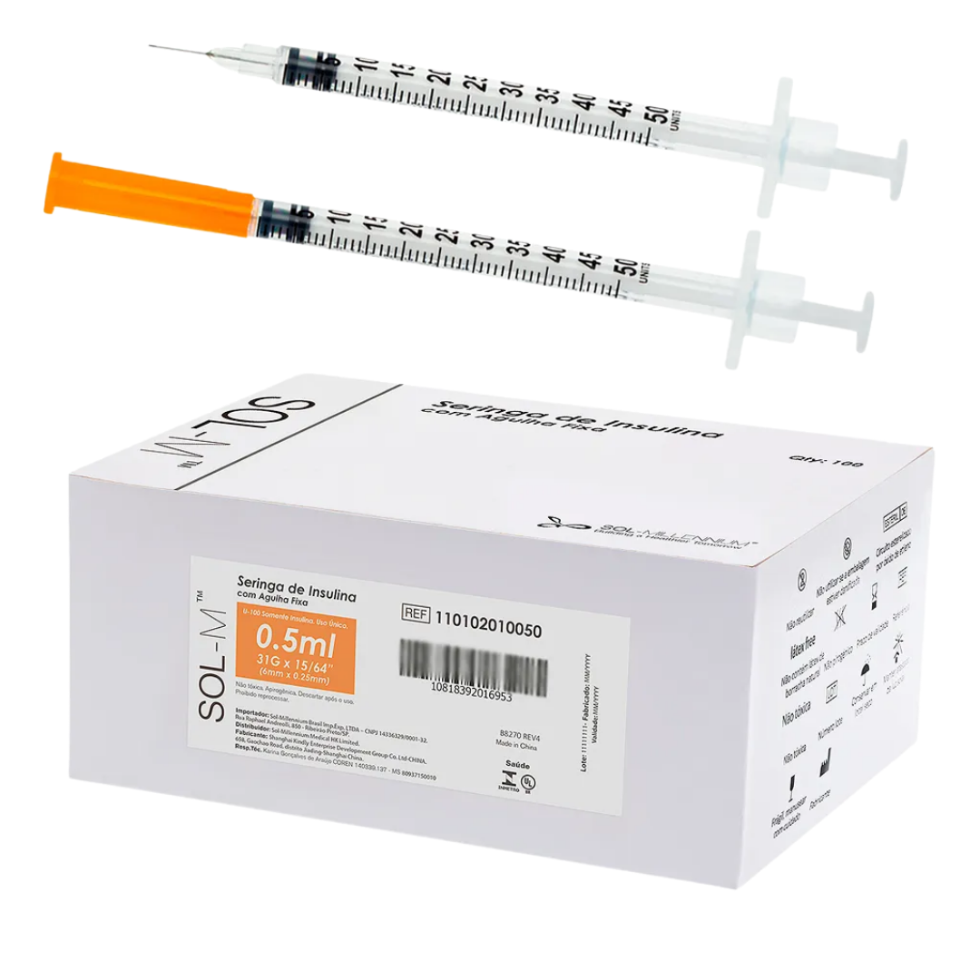 Seringa De Insulina 50u 0,5ml Com Agulha Fixa 31g 25x0,6mm C/100 Seringa De Insulina 50u 0,5ml Com Agulha Fixa 31g 25x0,6mm C/100